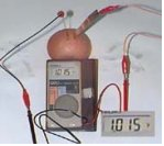 2.과일전지에서 발생되는 전류는 매우 작다. 이는 과일의 내부저항이 매우 크기 때문이다. 비록, 과일을 몇 개 연결하여 높은 전압을 얻더라도 발생되는 전류가 작기 때문에 꼬마전구를 이용해서는 불이 들어오지 않는다. 낮은 전류에서도 불이 들어오는 발광다이오드로 실험을 하는 것이 낫다.