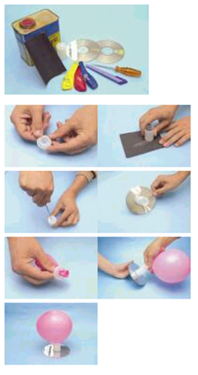 6) 필름통 뚜껑에 끼운 풍선을 불고, CD에 붙인 필름통에 뚜껑을 닫아 고정시킨다. 호버크래프트 완성!